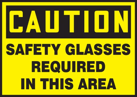 Warn employees and other individuals that safety glasses are required in this area.