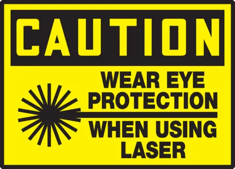 Warn employees and others to wear eye protection when using laser.
