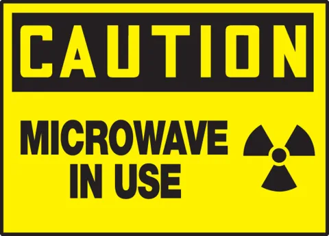 Warn others that a microwave is in use with this bold yellow safety label.