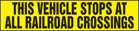 Accuform LVHR505XVE Safety Label: This Vehicle Stops At All Railroad Crossings