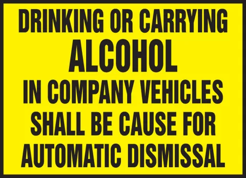 Accuform LVHR539VSP Safety Label: Drinking Or Carrying Alcohol In Company Vehicles Shall Be Cause For Automatic Dismissal