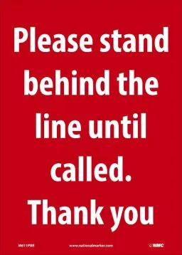 14" x 10" Please Stand Behind the Line Red/White Rigid Plastic
