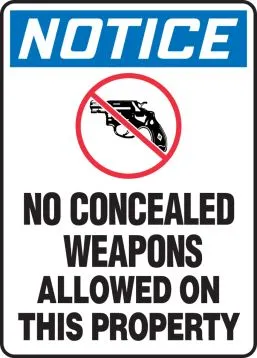 Accuform MACC823VS 6" x 4" OSHA Notice Safety Sign: No Concealed Weapons Allowed on This Property Red/White Adhesive Vinyl