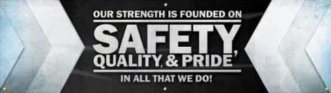 28" x 8-ft Motivational Banner: Our Strength Is Founded On Safety, Quality, And Pride - In All That We Do!, Adhesive Vinyl