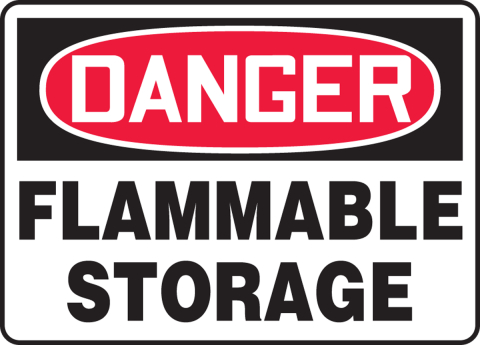 - Sign may be affixed where flammable material is stored