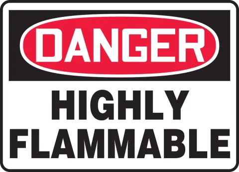 - Sign alerts employees and workers to areas where highly flammable materials are located.