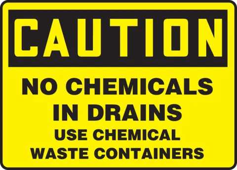 Prevent improper disposal of chemical waste by posting chemical safety signs.