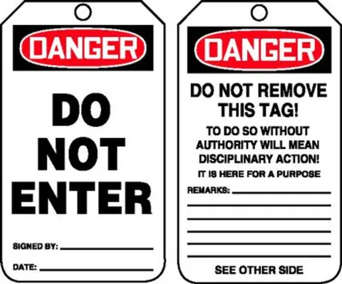 - Tag indicates a dangerous area that should not be entered
