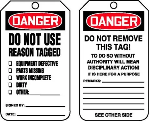 • Use tags to clearly mark inoperable devices