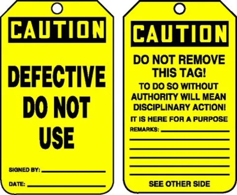 Accuform MDT603CTP OSHA Caution Safety Tag: Defective - Do Not Use
