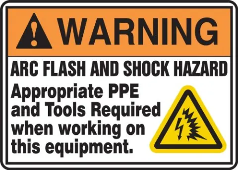 Alerts all personnel of arc and shock hazards and requires appropriate PPE be worn.