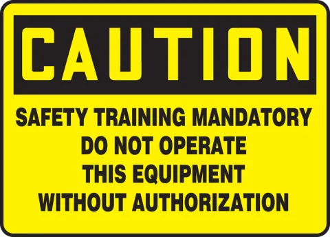 Accuform MEQM702XP OSHA Caution Safety Sign - Safety Training Mandatory Do Not Operate This Equipment Without Authorization