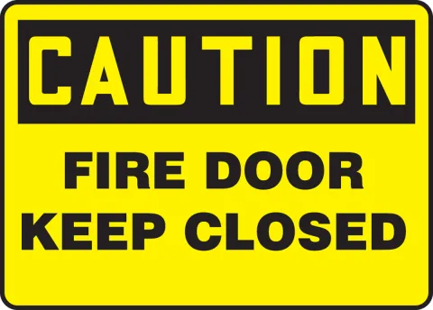 - Warn personnel to keep the fire door closed with this black and yellow sign.