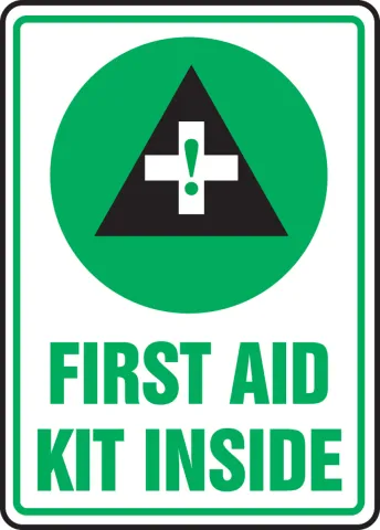 Large graphic calls attention to the first aid kit