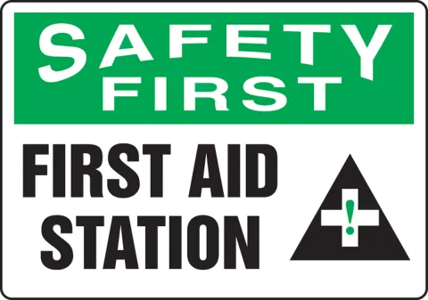 Accuform MFSD912VA OSHA Safety First Safety Sign: First Aid Station