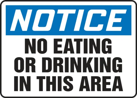 - Post an OSHA notice to restrict eating or drinking in areas where it could cause problems.