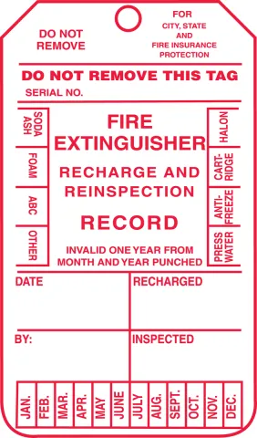 Accuform MGT210CTM Fire Inspection Safety Tag: Fire Extinguisher Record