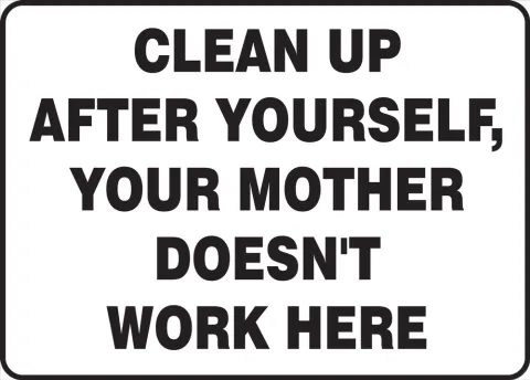 Accuform MHSK572VS Safety Sign: Clean Up After Yourself, Your Mother Doesn't Work Here