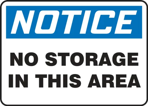 Accuform MHSK853XL OSHA Notice Safety Sign: No Storage In This Area