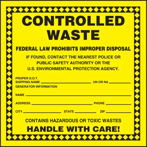 Accuform MHZW18PSC Hazardous Waste Label: Controlled Waste