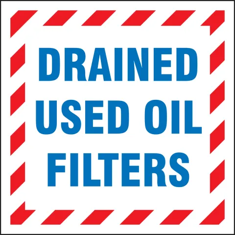 6" x 6" Drum and Container Label: "Drained Used Oil Filters"