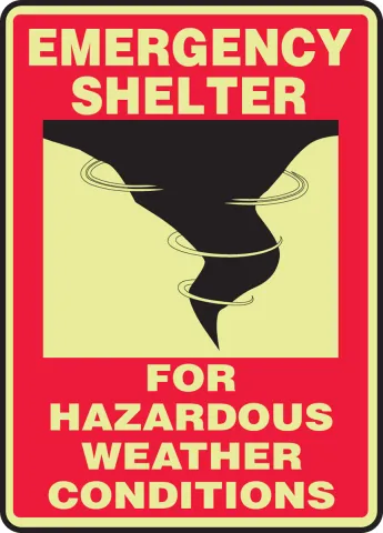 Use a large graphic and clear message to identify a safe refuge during a storm.