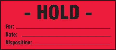 Accuform MPC020PS5 Transport & Shipping Label: Hold For:___ Date: ___ Disposition:___