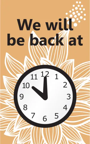 Double-Sided "Be Back" Clock Signs