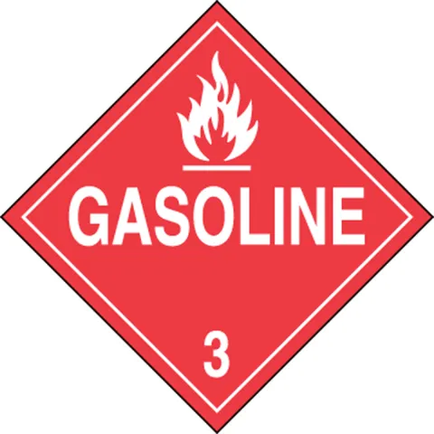 Properly mark all Gasoline that is being transported Ensure handlers are aware when handling Gasoline Identify specific hazardous materials by applying to visible locations Use placards on vehicles and large containers Specific color schemes, symbols, words, and numbers requirements identify the hazard Square-diamond format: Placard - 273 mm x 273 mm (10 3/4" x 10 3/4")