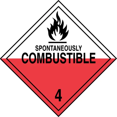 Properly mark all Spontaneously Combustible items that are being transported Ensure all handlers are aware when they are handling Spontaneously Combustible items Identify specific hazardous materials by applying to visible locations Use placards on vehicles and large containers Specific color schemes, symbols, words, and numbers requirements identify the hazard Square-diamond format: Placard - 273 mm x 273 mm (10 3/4" x 10 3/4")