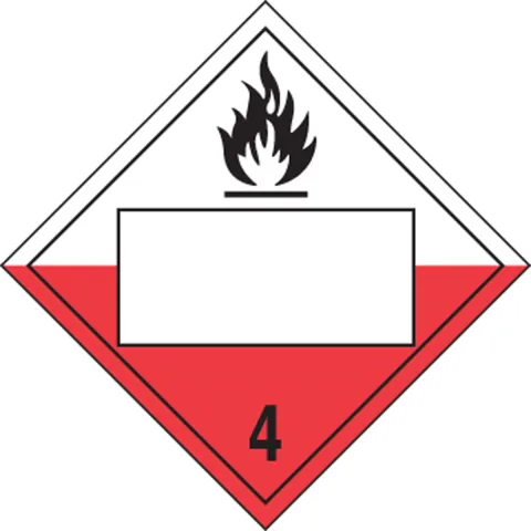 Properly mark all spontaneously combustible materials that are in transit Provide a location to enter a specific spontaneously combustible material ID number Identify specific hazardous materials by applying to visible locations Use placards on vehicles and large containers Specific color schemes, symbols, words, and numbers requirements identify the hazard Square-diamond format: Placard - 273 mm x 273 mm (10 3/4" x 10 3/4")