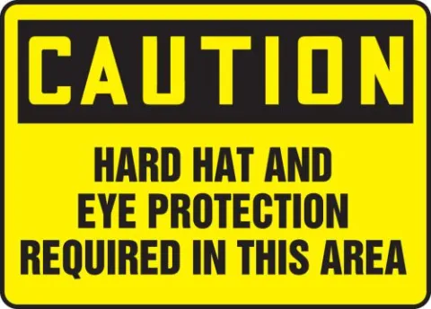 Place sign where risk of head or eye injury is presentBright yellow background with bold CAUTION header and large black textTraditional OSHA-style signs, tags and labels are the most widely recognized design format in the industryCaution header indicates a hazardous situation that, if not avoided, could result in minor or moderate injuryMaterial: PlasticSize: 10" x 14"