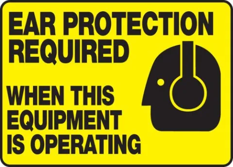 Protect your employees from hearing damage when loud machinery is running.Remind employees to wear ear protection Make company policy concerning PPE known Material: Adhesive Dura-Vinyl Size: 10" x 14" Language: English