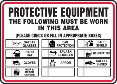 Accuform MPPE537XV 10" x 14" Safety Sign: Protective Equipment - The Following Must Be Worn In This Area - Please Check Or Fill In Appropriate Boxes, Adhesive Dura-Vinyl
