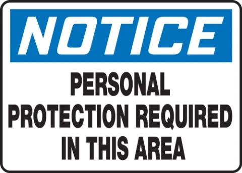 Affix in designated workspaces where PPE is mandatoryPromoting use of PPE in workplace decreases risk of injuryTraditional OSHA-style signs, tags and labels are the most widely recognized design format in the industryNotice header indicates information considered to be important but not hazard-related