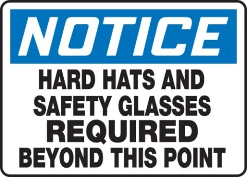 Notify workers that hard hats and safety glasses are required to enter area.