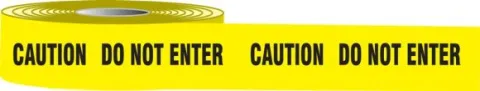 Warn people to use caution and avoid entering hazardous areas. Use tape to block access.Bold caution message repeats for the entire length of the roll Caution header indicates a hazardous situation that, if not avoided, could result in minor or moderate injury Material: Aluminum Size: 3" x 1000-ft Language: English Color: Black Sign Arrow Direction: Left