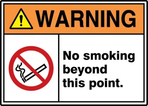 Remind employees and the public of smoking prohibitions at your facilitySimple graphic effectively presents the messageSafety messages and actions to be taken are distinguished by shapes and colorsDisplay in areas requiring safety symbol messagesAll Plastic and Aluminum ISO signs have post mount holesAs of September 11, 2013 under the Direct Final Rule (DFR), OSHA validates and adopts ANSI Z535 product safety labeling formats through update to facility safety signs and tag regulations,As a result, the ISO-7010: 2011, graphical symbols were incorporated on the symbol panels of ANSI Z535-style signage, so that any person or worker would be able to understand and comprehend the sign no matter what language it was printed inAs such, their use in the workplace is a significant step forward in improving safety and better protecting workers of all backgroundWarning header indicates a hazardous situation that, if not avoided, could result in death or serious injuryMaterial: Adhesive Dura-VinylSize: 7" x 10"As of September 11, 2013 under the Direct Final Rule (DFR), OSHA validates and adopts ANSI Z535 product safety labeling formats through update to facility safety sign and tag regulations, which states that any company cannot be fined for using ANSI signs or labels in the workplace.