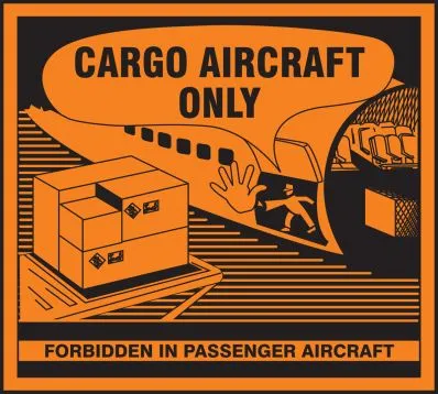 Clearly mark shipped materials for cargo plane transportation only.