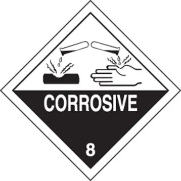 Corrosives can be defined as followed: A material, liquid, or solid that causes visible destruction or irreversible alteration to human skin or a liquid that has a severe corrosion rate on metals