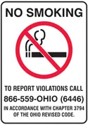 Accuform MSMK441VS 10"x7" Sign No Smoking - to Report Violations Call - 866-559-OHIO (6446) - in Accordance with Chapter 3794 of The Ohio Revised Code