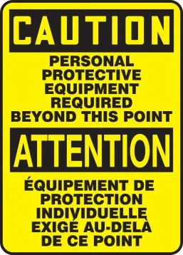 Avoid injury or worse by ensuring PPE is wornProperly mark the point in which PPE must be worn utilizing French and English textBilingual signs help protect all your workersTraditional OSHA-style signs, tags and labels are the most widely recognized design format in the industryCaution header indicates a hazardous situation that, if not avoided, could result in minor or moderate injury