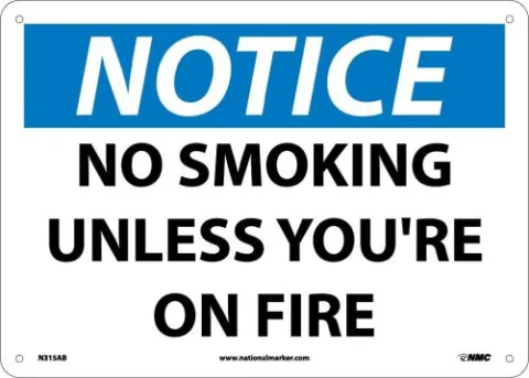 Don"t let your no-smoking policy slip. This no smoking unless you"re on fire sign manages to be simultaneously humorous and powerful.