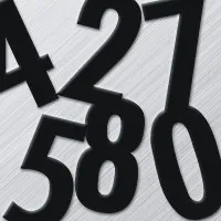 Gothic font, upper-case letters and numbers are die-cut .030" thick magnetic co-polymer vinyl in different colors and different sizes.