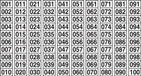 Sequential Number Markers Quickly and easily mark areas in numerical order. Eliminate the need to create multiple digit numbers by lining up single digit numbers side-by-side. Come in series of 100 (series 901-999 has one less per set).
