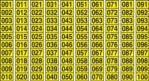 Accuform NCS1050YL 20" x 14" Sequential Number Marker: 5/8-in Black on Yellow 001-100