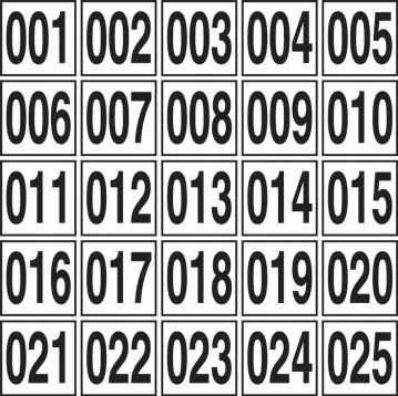 Sequential Number Markers Quickly and easily mark areas in numerical order. Eliminate the need to create multiple digit numbers by lining up single digit numbers side-by-side. Come in series of 25.