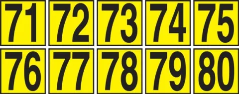 Accuform NCS1077YL Adhesive Vinyl - Black On Yellow Sequential Number Markers: 3-1/2-in 71-80 Series