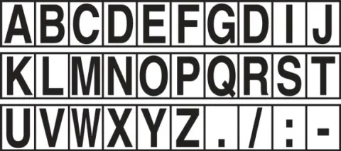 Self-aligning markers are printed so that the characters are evenly spaced for ease of reading. - alphabetically A to Z and numerically 0 to 9 (5/8" number set offers three sets of 0 to 9.)