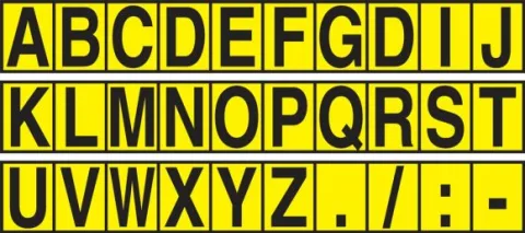 Self-aligning markers are printed so that the characters are evenly spaced for ease of reading. - alphabetically A to Z and numerically 0 to 9 (5/8" number set offers three sets of 0 to 9.)